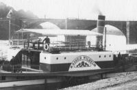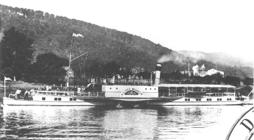 KAISER WILHELM vor der Brücke zwischen Lauenförde und Beverungen mit Blick auf Beverungen (die Brücke wurde im 2.Weltkrieg zerstört).