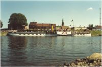 Nach den Umbauten fuhr der KAISER WILHELM über die Nordsee zurück in sein Weserrevier und zum dritten Mal an Lauenburg vorbei. Welcher Lauenburger hätte damals je gedacht, dass er dieses Weserschiff nach 60 Jahren wieder sehen würde und dann noch mit Heimathafen "Lauenburg“.