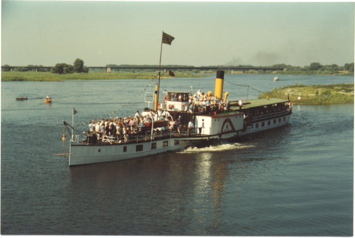 Nach der Wiedervereinigung unternahm der KAISER WILHELM am 6. / 7. Juli 1991 eine Wochenendfahrt über Hitzacker nach Schnackenburg. Am Sonntag ging die Fahrt weiter nach Wittenberge. Der KAISER WILHELM war das erste West-Passagierschiff, das nach der Wende Wittenberge anlief. Es war ein großartiger Empfang, der Deich war voller Menschen.